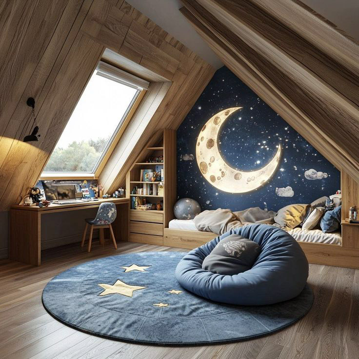 Детская комната в идеале должна быть выполнена в том же стиле, что и весь дом. Но ведь это спальня конкретного человека, а поэтому должна соответствовать его интересам. Оформление детской комнаты в определённой тематике — отличный способ создать особое пространство для ребёнка. Это не просто комната, а целый мир приключений и фантазий! Но важно сделать всё так, чтобы через пару лет, с неизбежной сменой интересов, было не сложно внести изменения. Лучше всего выбрать базовую основу. Для основного цвета подойдут белый, бежевый, пастельные оттенки. На них потом легко «накладывать» тематические элементы, которые могут и должны быть яркими. Это могут быть декор, текстиль, светильники, наклейки. Какими бы банальными они ни казались, у наклеек есть главное преимущество: их легко убрать или заменить. Не стоит делать тематической крупную мебель, кровать или шкаф, если вы хотите, чтобы они служили подольше. Выбирайте то, что можно легко убрать или заменить. И если ребёнок уже может рассказыв