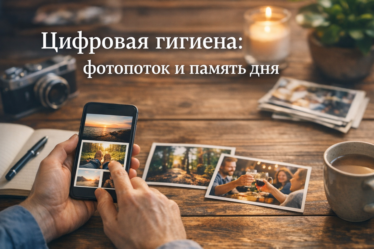 Хорошая новость в том, что фотопоток можно превратить из источника перегрузки в тихий инструмент поддержки памяти. Для этого не нужно удалять тысячи снимков и устраивать цифровые подвиги. Достаточно настроить один небольшой ритуал «три снимка дня».