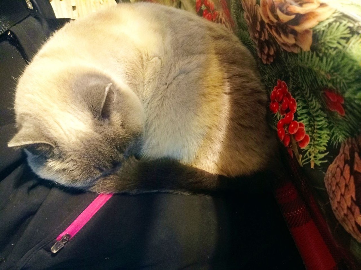Когда-то я писала, как Тортина пахнет лесом. Сегодня я расскажу о том, как она пахнет зимой. Тортина пришла домой утром – аккурат к первому кошачьему завтраку (он случается тогда, когда я просыпаюсь, потому что за мной бегает толпа кошек и орет на весь дом, грозя перебудить всех остальных. Разумеется, к этому хору тут же прибавляются демонические завывания Лимона). Съев своего цыпленка, Тортина устроилась на стуле – умываться. Я, уже успев сделать это, тоже наконец уселась – с чем и книгой. За последнюю неделю со всеми нашими приключениями (а вчера у меня еще и предзащита магистерской диссертации была!) мне удалось прочитать меньше 100 страниц, а это вообще-то мой «базовый» объем на день, чтобы сохранять психологическое благополучие. Как только я с блаженным трепетом приземлилась на стул, ко мне на колени тут же переползла Тортина. И в нос мне сразу ударил прохладно-влажный запах растаявшего снега, но сохранившегося в виде мельчайших капелек воды на ее шерсти. Я несколько раз глубоко