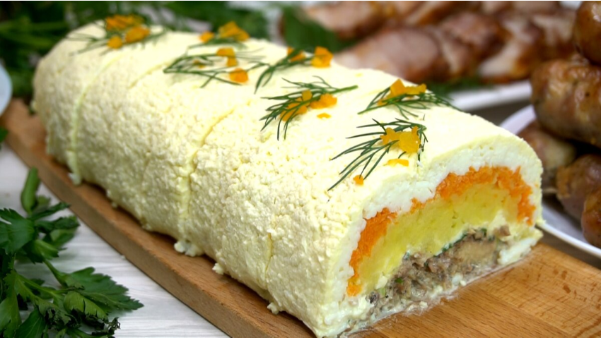 Такой салат-рулет решает сразу две задачи: это и знакомый вкус, и эффектная подача. Его легко взять с собой на пикник или праздник — он не перевернется по дороге. Попробуйте этот способ, чтобы разнообразить меню и удивить гостей.