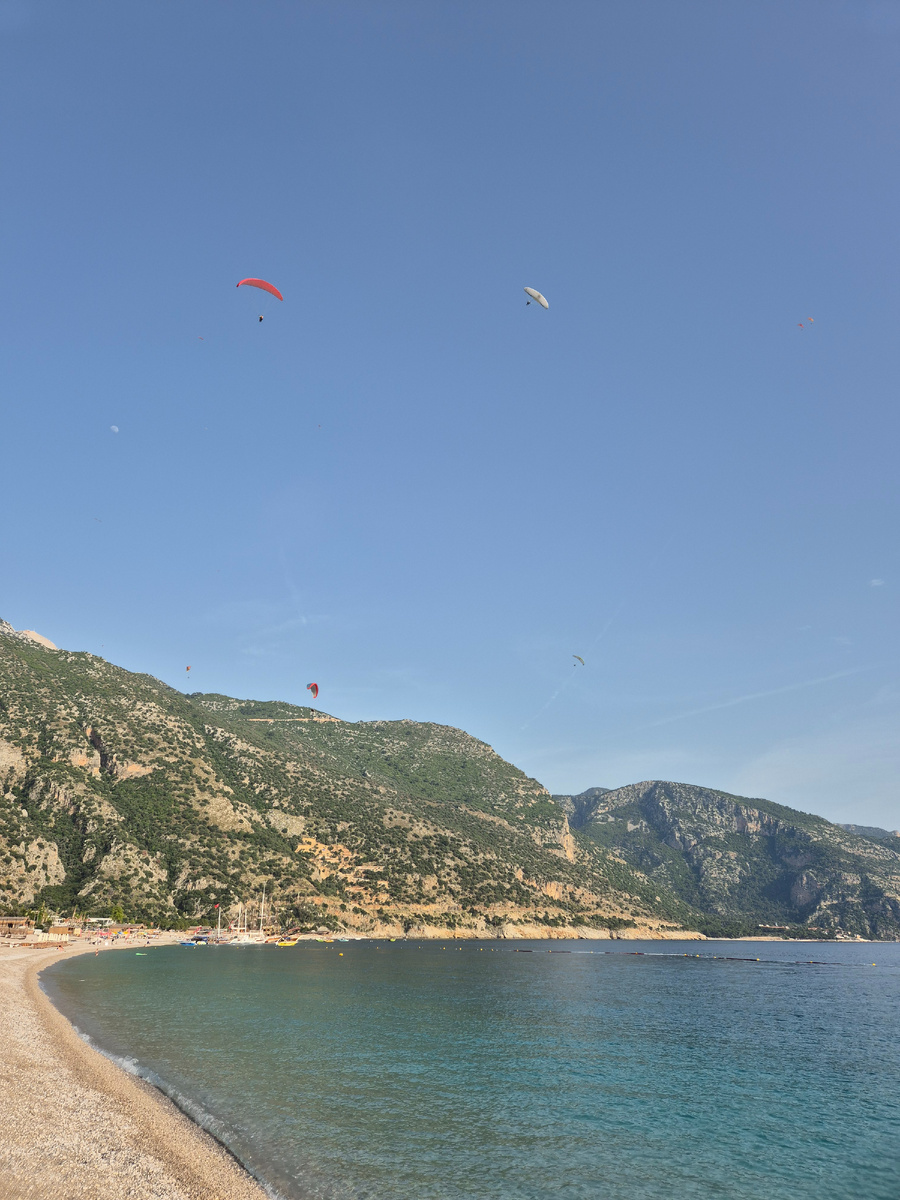 Ещё вчера, гуляя по пляжу Олюдениза и любуясь разноцветными парапланами, словно лепестками из волшебного цветика-семицветика, легко скользящими по ветру, мы не могли не думать, с какой высоты они летят. А спускались они с 1700 метров живописнейшей огромной горы со смешным для русского уха названием Бабадаг.