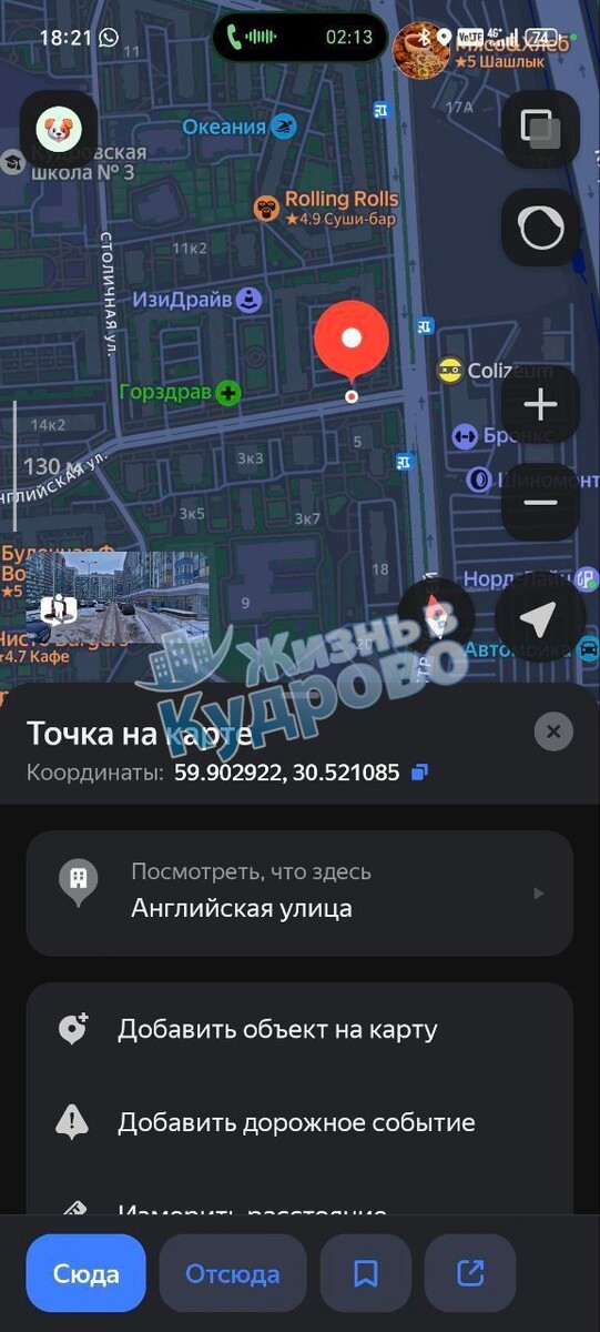 Стукнули машину на английской 2.Приложил скрин на карте. Машина стояла целый день 13 декабря. На вьезде во двор около дикси. Прошу очевидцев отликнуться. Если виновник это читает отликнись, решим по хорошему. Даже номер не оставили. А то уехать с места ДТП это лишение водительских прав. Из предложки 🌇 Жизнь в Кудрово Есть новости? Пишите сюда.