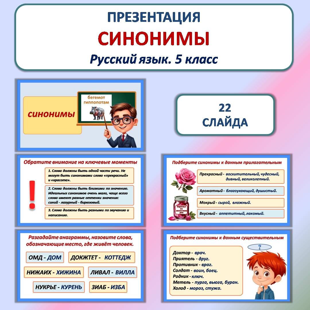 Презентация «Синонимы» разработана к уроку русского языка в 5 классе.