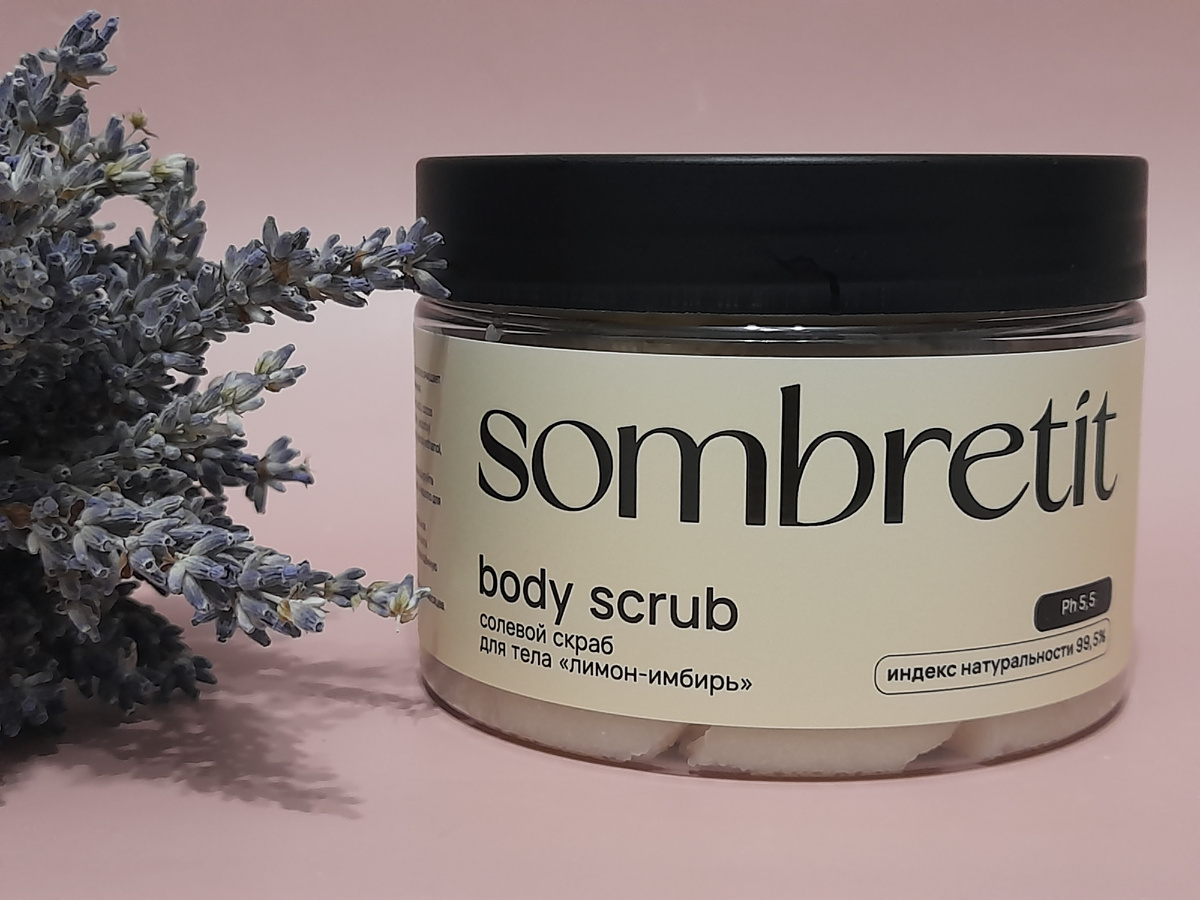 Скрабами для тела я пользуюсь регулярно. Они помогают поддерживать кожу в тонусе, очищают ее, делают гладкой и упругой. Мне понравились скрабы от молодого российского бренда SOMBRETIT. Пробовала все четыре вида и каждый классный по-своему. Покорили ароматы, текстура и результат использования. Расскажу о солевом скрабе для тела антицеллюлитном Лимон-Имбирь. Объем баночки - 300 мл Срок годности - 24 месяца Страна производства - Россия Основными компонентами состава этого скраба выступают: ✅эфирные масла; ✅лимон ✅имбирь Очень красивая баночка! Выглядит стильно. По периметру указана вся важная информация о данном продукте. "Солевой скраб с ароматом «Лимон-Имбирь» и органическими компонентами заботится о коже и настроении" - именно так сообщает производитель! Сразу после вскрытия ощущается свежий, яркий, приятны аромат! В основе скраба морская соль и натуральные эфирные масла. Частички соли мелкие, поэтому они нежно, но эффективно очищают и скрабируют кожу. В скраб добавлен порошок