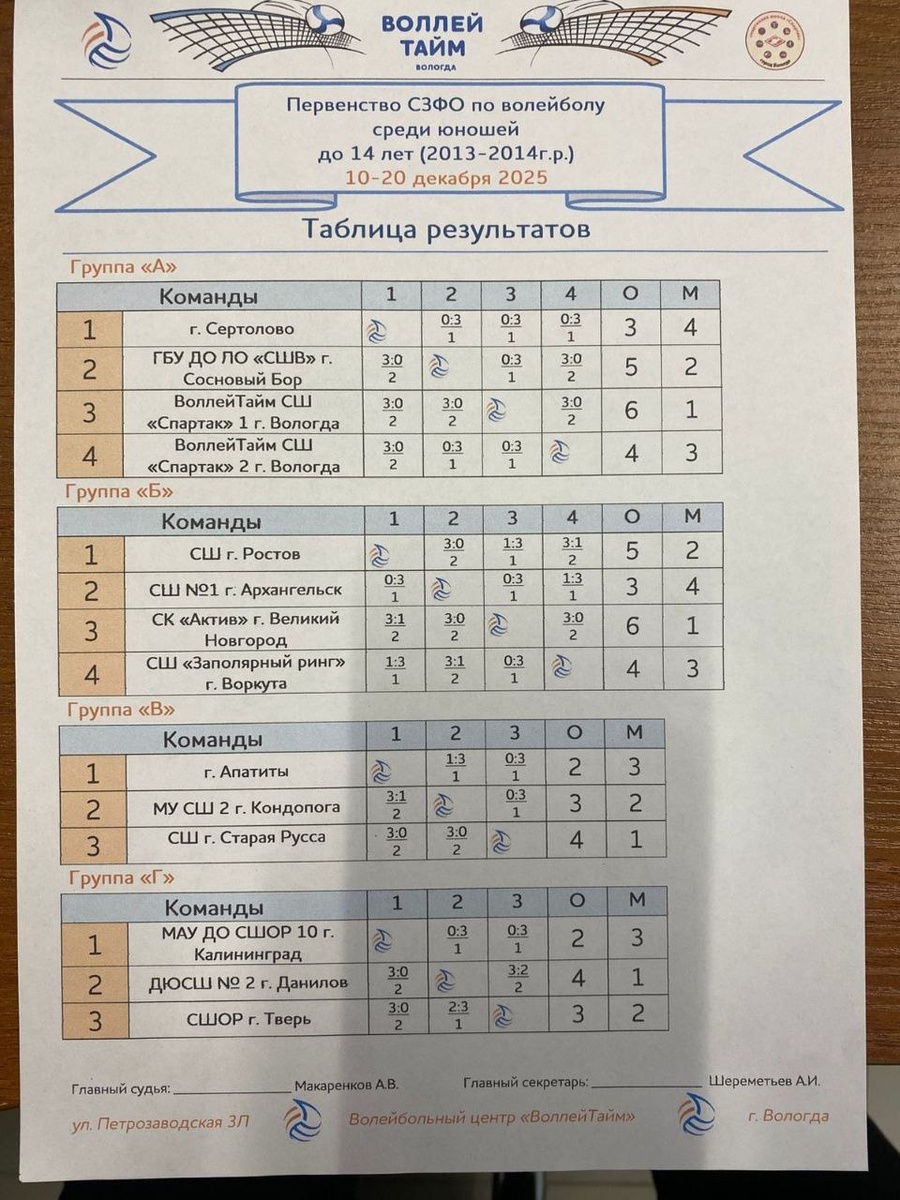 Пришли прекрасные новости из г. Вологда, где проходят игры первенства СЗФО по волейболу среди юношей до 14 лет (2013 — 2014 года рождения). Великий Новгород, «Псковский актив», парни на групповом этапе достойно сыграли свои матчи, и теперь им предстоит отстаивать наш город в 1/4 финала турнира. Мы ждём с победой наших мальчишек и желаем им удачи и успехов на паркете, мы верим в вас