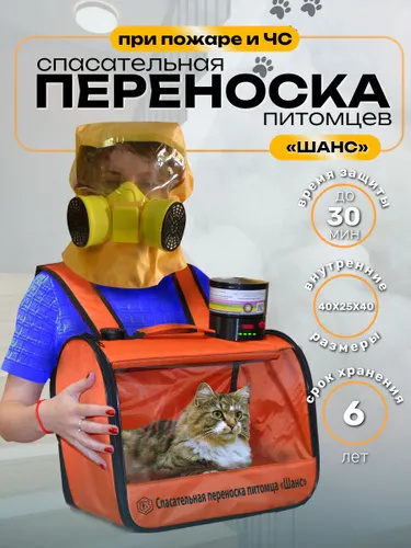И вот появилась Спасательная переноска питомца (СПП) «Шанс» с принудительной подачей воздуха, заметной,яркой окраской,защитой от дыма на 30 минут, и 60 минут от аварийно-химически-опасных веществ. Компактная и эргономичная.