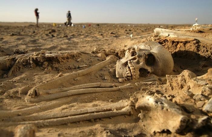 В конце 20 века в западной части Египетской пустыни, вдали от туристических маршрутов и привычных археологических зон, итальянские исследователи Анджело и Альфредо Кастильони вели работы, о которых было мало кому известно. Экспедиция проходила в одном из труднодоступных районов Сахары, между цепочками древних оазисов, где ландшафт почти не менялся тысячелетиями. Именно там, среди песка и выветренных плато, археологи начали находить разбросанные человеческие кости, фрагменты скелетов, а рядом различные предметы, вроде бронзовых наконечников стрел, элементов вооружения, обломков сосудов и украшений. Останки лежали не в погребениях и не в могильниках, а словно были оставлены там, где людей настигла внезапная смерть. По мере накопления находок у исследователей возникло предположение, что перед ними следы масштабной катастрофы. Датировка предметов указывала на 6 век до нашей эры, а характер вооружения позволял говорить о военном отряде. Именно тогда у Кастильони возникла смелая гипотеза: в