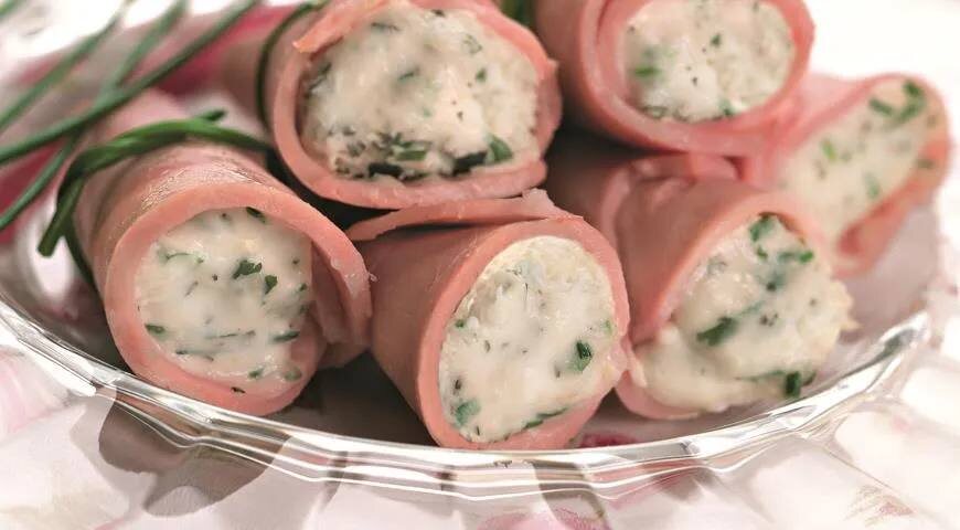 - Рулетики из ветчины с грибами
