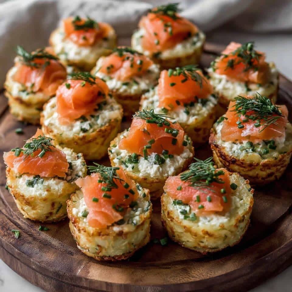 Для: 6 человек Приготовление: 25 минут 🛒 Ингредиенты 🥔 Тертый картофель-500 г 🧂 Соль и перец – по 1 щепотке каждого 🧈 Топленое сливочное масло-20 г (для формочек) 🧀 Свежий сыр (типа рикотта или Филадельфия) – 200 г 🌿 Свежий зеленый лук – 1 пучок 🍋 Цедра лимона – 1 ч. л. 🐟 Копченый лосось – 150 г 🌿 Свежего укропа - несколько веточек 👨 🍳 Этапы приготовления 1.🥔 Приготовьте картофельную основу Отожмите тертый картофель, чтобы удалить как можно больше воды. Приправьте солью и перцем, затем перемешайте до получения эластичной, но не влажной текстуры. 2. смажьте форму маслом и сформируйте днища Смажьте форму для мини-кексов растопленным сливочным маслом. Выложите небольшое количество картофеля в каждую ямочку, слегка приподнимая края, чтобы получилось небольшое гнездо. 3.🔥 приготовьте картофельные гнезда Выпекать 15-20 минут при температуре 190°C, пока края не станут золотисто-коричневыми и хрустящими. Дайте остыть, прежде чем вынимать из формы. 4.🧀 приготовить сливочно-сырный