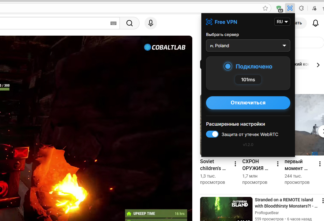 Сегодня примерно в 20.00 (по мск) вдруг перестал работать Ютуб. Даже через проверенный ВПН (ВПН Наружу). Пришлось снова искать новый. В итоге нашел рабочий и бесплатный - логотип и название смотрите на картинке. Расширение использую в стандартном браузере Windows - Microsoft Edge. В будущем, в случае, если проблема снова появится, буду изменять статью. Если кому интересно, подписывайтесь, отслеживайте, советуйте свое решение проблемы с Ютубом.
