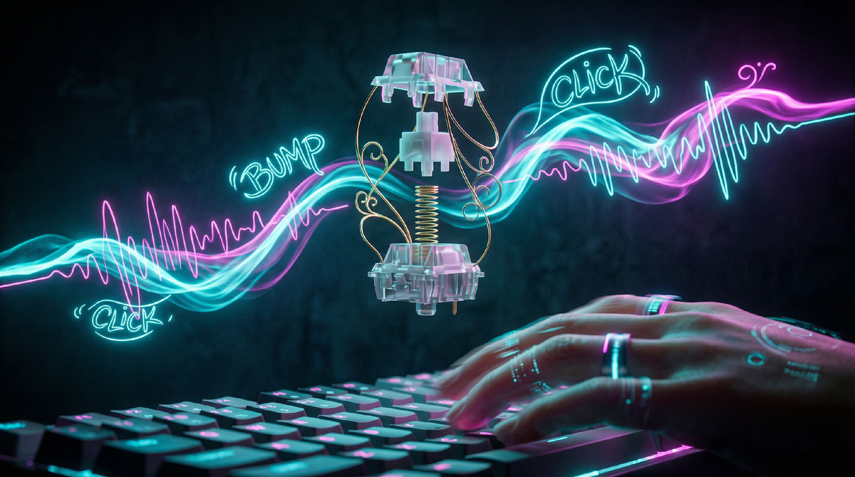 - Кликающие (Clicky). Те самые, про которые все думают, когда слышат «механика». Это тактильные свитчи с усиленной аудио-поддержкой. В них бамп сопровождается звонким, удовлетворяющим «кликом». Не просто щелчок, а сочный, механический звук. Не для офиса, конечно. Но дома… Это непередаваемое чувство. Печать превращается в симфонию. Как спортивное авто с рёвом мотора — не для всех, но фанаты понимают.