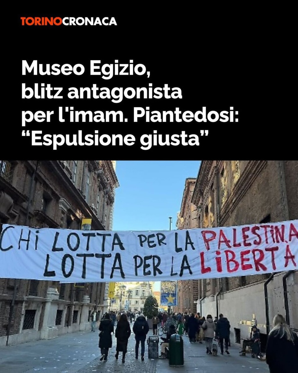 ❤️ НОВОСТИ ТУРИНА ✅ СПРАВКА: Эта новость переведена и размещена при помощи искусственного интеллекта Chat GPT без участия человека, в случае если вы заметили ошибку, или новость не соответствует реальному событию — сигнализируйте, исправим. 👉 Искренне Ваш Сержио Боттичелли: https://www.facebook.com/mercator.cz __________________ Баннеры и листовки в поддержку имама Мохаммеда Шахина. Сегодня утром, в субботу, 13 декабря, перед Египетским музеем прошла акция со стороны анархистов. Перед входом в музей в знак солидарности с имамом мечети на улице Салуццо были размещены два баннера: один с надписью «Кто борется за Палестину, борется за свободу», другой — «Остановить депортации, свободу Шахину, свободу всем». Некоторые листовки с лозунгом «Остановить депортации, свободу Шахину» были разбросаны на земле перед туристами. На место происшествия прибыла полиция (Digos) из управления полиции Турина, которая проводит расследование. Тем временем на мероприятии «Атрейу», проходящем в эти дни