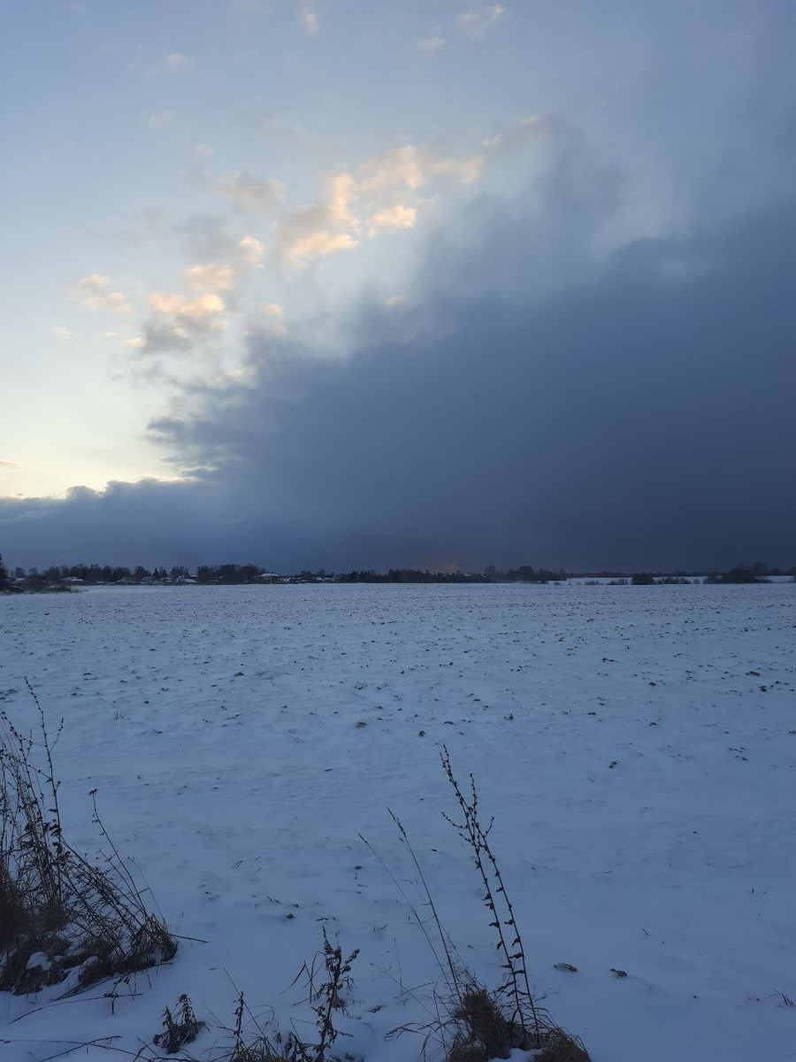 Здравствуйте, дорогие мои друзья! Представляете, у нас сегодня солнышко выглянуло, жаль, не надолго. Похолодало заметно, вот солнышко и показалось. Но погода за день менялась очень сильно. То мело, то передувало, то лучик солнечный проглядывал, то снова хмурилось. Под конец дня снова робко солнце пыталось показаться. Ехала от мамы домой, заметила на небе красноватую пелену, даже закатом полноценным не назовёшь. Думаю, сверну к посёлку, сфотографирую. Но какая-то минута прошла, и всё, уже ничего не видно. Вон там вдалеке чуть-чуть виднеется полоска, пока фотографировала и она погасла. Как видите, снега у нас немного. Утром сегодня проснулась в половине пятого, голова сильно болела. Приняла лекарство, но уснуть больше не смогла. Полежала-полежала, так через час и встала. Повырезала рецепты из журнала, запустила стирку постельного белья. Позавтракали, я горячие бутерброды делала. А потом что-то мне подремать захотелось. Коля телевизор смотрел, а я завернулась в одеяло и бессовестно п