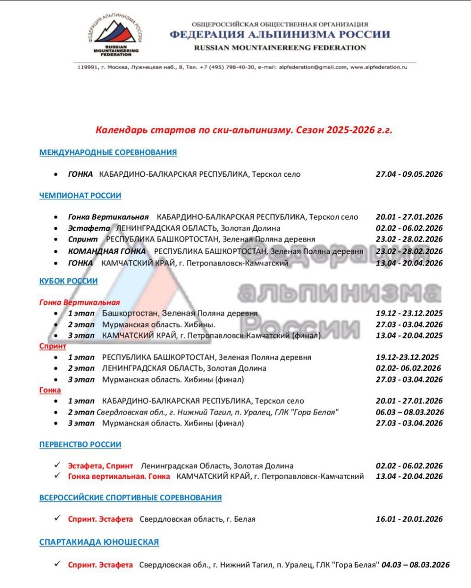 Календарь стартов 2025-2026!! Возможны изменения.