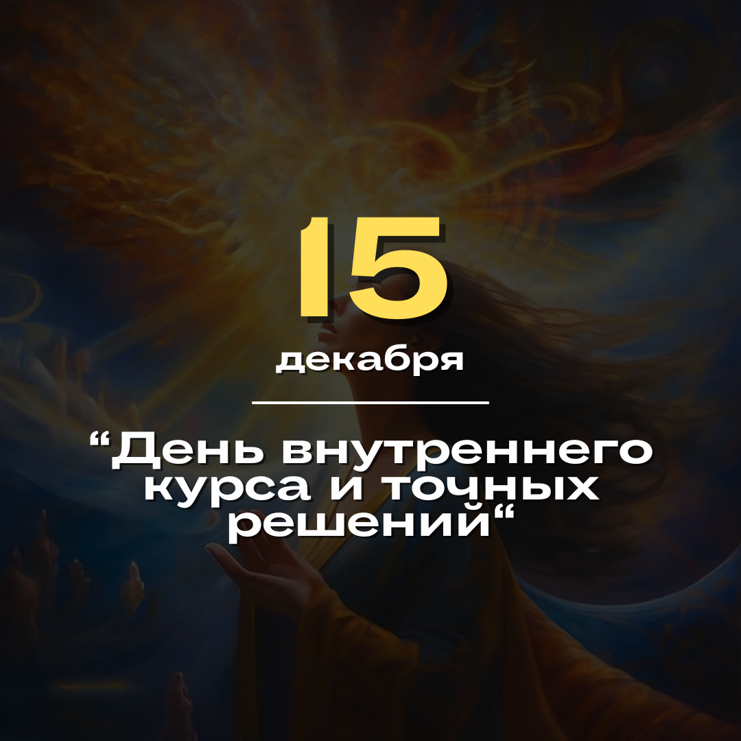 🌒 15 декабря — День внутреннего курса и точных решений Сегодня пространство работает как детальная настройка: оно выводит тебя в состояние, где всё лишнее отступает, а главное становится объёмным и очевидным. Это день, когда ты замечаешь не только что важно, но и как это воплотить. Энергия не громкая, но предельно сфокусированная. Она помогает успокоить колебания, суету, информационный шум — и направить себя в сторону, которая действительно приносит результат. 🔮 Главная тема дня: «Точка фокусировки» Ты словно берёшь в руки линзу: той частью внимания, куда попадёт луч, ты и создашь действие. Сегодня важно не распыляться. Одна мысль → одно решение → один шаг. Так ты удерживаешь силу внутри, а не сливаешь её в ненужные процессы. 🧭 Благоприятно: ✔ Чётко определять один главный вектор дня Если у тебя три приоритета — найди тот, который не терпит паузы. Он и есть твой курс. ✔ Заниматься структурой: планами, логикой, схемами Материя сегодня податлива к порядку. Письменные планы будут о