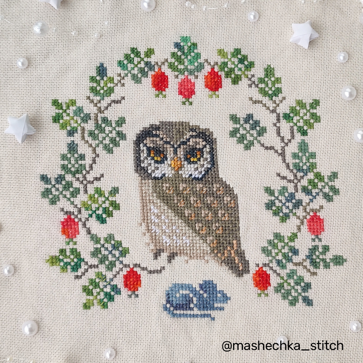 🦉Совчик готов! Помимо "основной программы" решила дополнительно вышить все перышки, не оставляя пустых промежутков. И по мордочке тоже прошлась немного белыми стежками. Так смотрится обьемнее. 🦉Теперь впереди новая задача: вышить ещё одну совушку для оборотной стороны грелки. Выбрала белую совунью — нежная, идеально дополнит основную сторону.