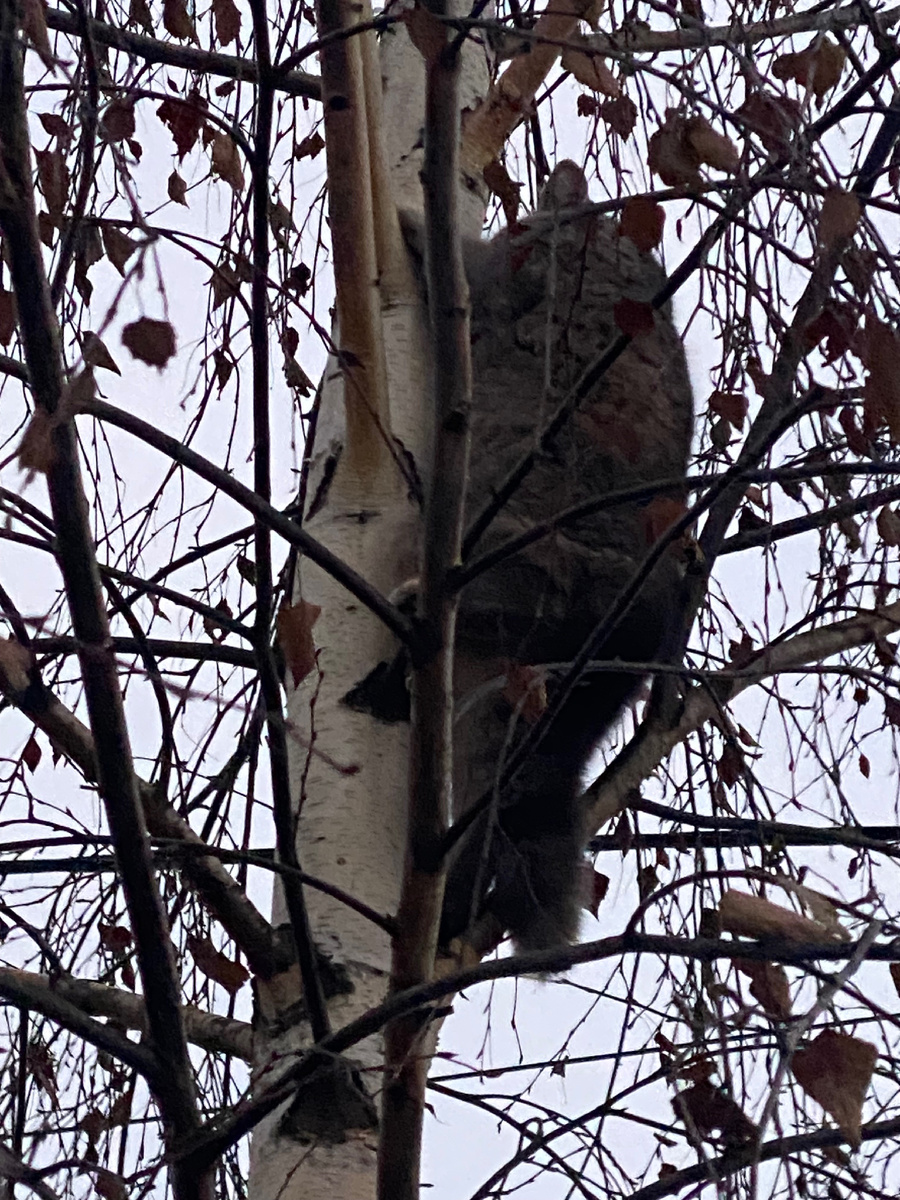 Постоянные подписчики помнят историю про кота, который летом жил у меня в подсобке. На днях мы с этим котом пересеклись, почти через 4 месяца. С началом истории можно ознакомиться в старых публикациях. Тогда выдворить кота удалось, оставив на пару дней дверь открытой (так, чтобы кот мог пройти, а собака внутрь не могла попасть) и прекратив откармливать гостя. Потом еще несколько дней проверяла кладовку, ушел или нет. Ставила корм, миска осталась полной, значит товарищ ушел. И вот на днях мы с котом встретились. Собака встрече обрадовалась, кот был не рад, а я старалась удержаться на обледеневшей дороге, когда моя собака дернула поводок в сторону хвостатого знакомого. Кот вышел из-под забора, наших соседей (он точно не их), увидел нас и офигел. Мне показалось, что животные друг друга узнали. А я вот не сразу поняла, что это наш знакомец. Он побежал вперед и залез на березу, что была по пути. И когда мы поравнялись с деревом, я узнала и морду, и общий силуэт моего августовского "урож
