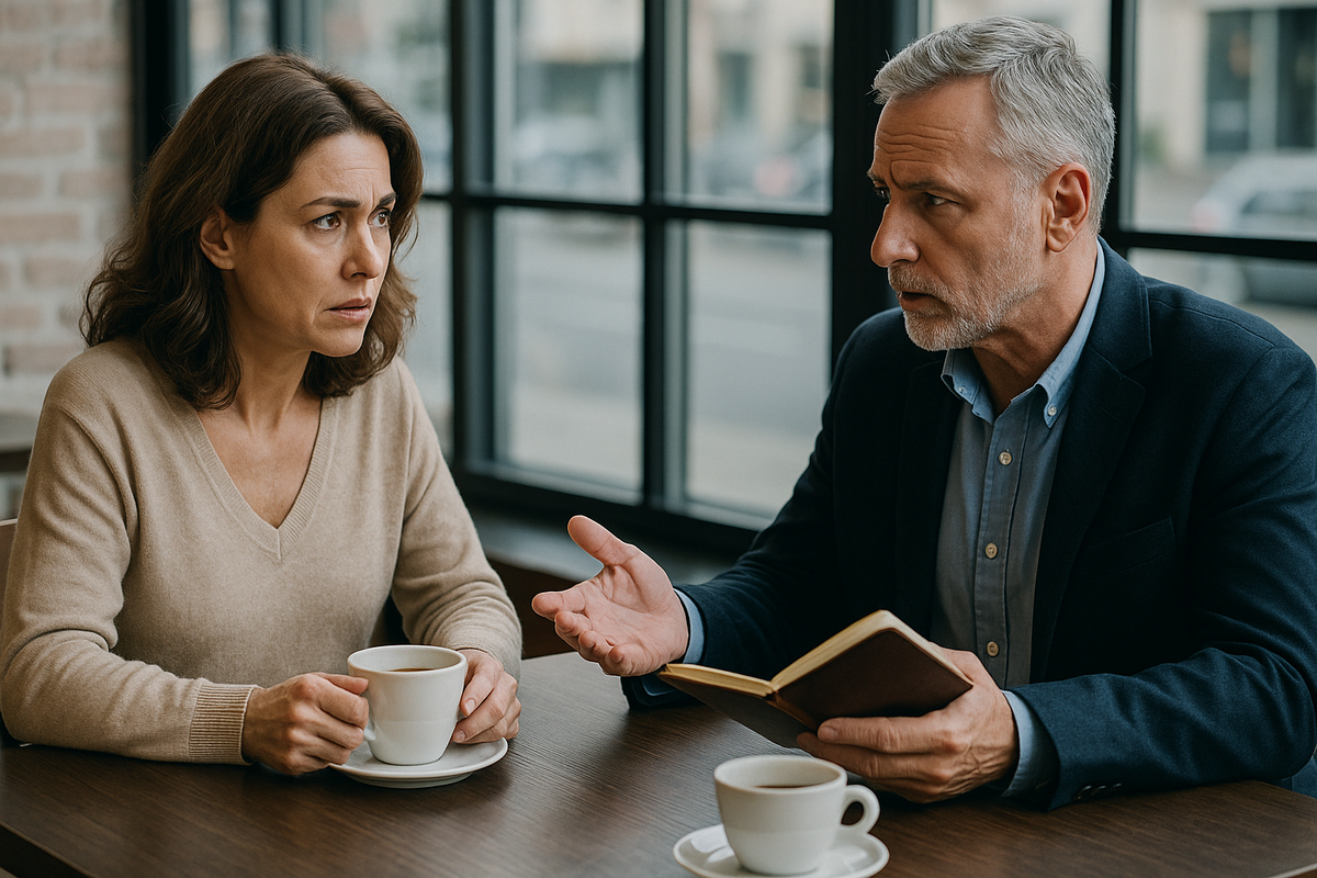 Иногда кажется, что с возрастом мужчины становятся мудрее. Но потом ты встречаешь такого... С блокнотиком и условиями. Сначала он показался спокойным. Без пафоса, без «солнышек», без флирта на грани. Просто мужчина, который любит книги, кофе и говорит, что «всё уже доказал в жизни». Познакомились в сети - не на сайте знакомств, а в группе по интересам. Обсуждали одного автора, он написал комментарий, я ответила. Потом завязалась переписка. Неспешная, взрослая. Он писал грамотно, без смайлов, без давления. Даже это казалось редкостью. Через пару недель предложил встретиться. В кафе, недалеко от моего дома. Он приехал на 15 минут раньше. Сидел за столиком, пил чёрный чай. На мне задержался взгляд, он встал, поздоровался. Всё чинно. Он держался с достоинством, но без позы. Первая встреча прошла спокойно. Он рассказывал, что живёт один, что устал от суеты и не хочет больше «разборов полётов». Я слушала и ловила себя на мысли, что мне приятно это спокойствие. Во втором разговоре он спросил