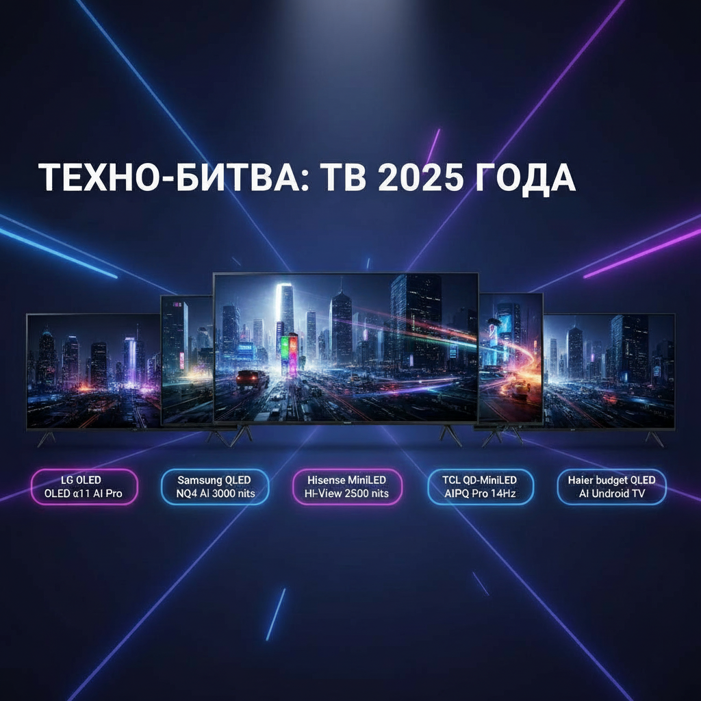 Выбор телевизора в 2025 году — это не только диагональ и цена, но и технологии вроде ИИ-обработки изображения, которая превращает обычный контент в кинематографический шедевр. Сравниваем лидеров: LG, Samsung, Hisense, TCL и Haier. Фокус на матрицах, ОС, ИИ и отзывах, чтобы помочь решить: OLED для идеального черного или QLED для яркого дня? QLED vs OLED: основы технологий OLED-пиксели светятся самостоятельно, давая бесконечный контраст и черный без подсветки, но яркость ограничена (до 2000 нит). QLED/MiniLED использует квантовые точки и тысячи зон подсветки для пиковой яркости 3000+ нит и насыщенных цветов. ИИ 2025 года (α11, NQ4) анализирует кадры в реальном времени: апскейлинг SD до 8K, шумоподавление, адаптация под освещение комнаты. Результат — картинка "как в зале". Рейтинг брендов 2025 Данные по флагманам: LG G5, Samsung QN95D, Hisense U9NQ, TCL C955, Haier G0. Обзоры брендов: плюсы, минусы и фичи LG: король OLED Матрица и ИИ: Собственные WOLED с MLA-технологией (+30% яркости), α