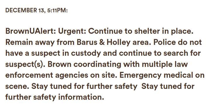 В ответ на пост ⚡️ Brown University shooter STILL at large ‘Continue to shelter in place’