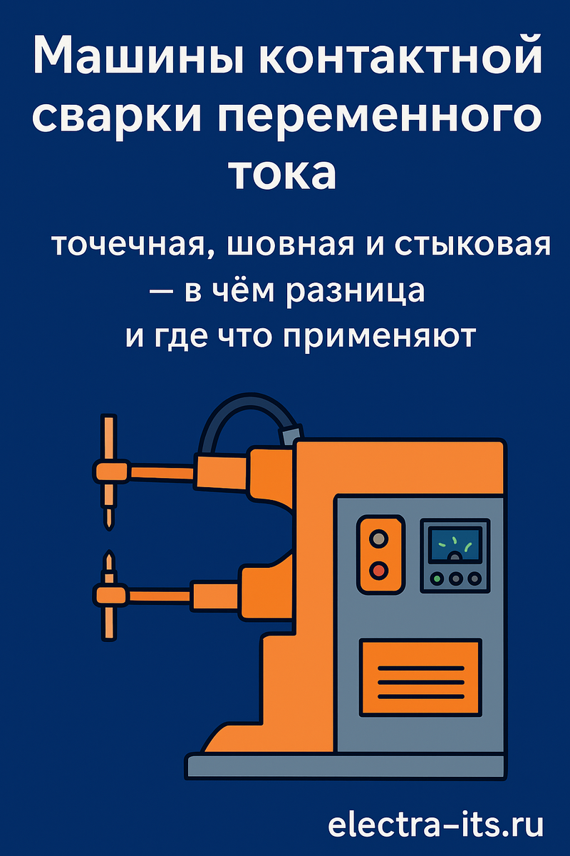 точечная, шовная и стыковая — в чём разница и где что применяют В промышленности часто говорят: «Контактная сварка — она и есть контактная». Но на практике точечная, шовная и стыковая сварка решают совершенно разные задачи. Разберёмся простым языком, чем они отличаются и почему машины переменного тока до сих пор широко используются на производстве. Почему до сих пор используют переменный ток Несмотря на появление современных инверторов, машины контактной сварки переменного тока остаются востребованными, потому что они: простые и надёжные; устойчивы к перегрузкам; легко обслуживаются; работают в тяжёлых условиях цеха; понятны инженерам и операторам. Именно поэтому их используют в машиностроении, строительстве, ж/д и оборонной промышленности. Точечная сварка — быстро и массово Точечная сварка — самый распространённый вариант контактной сварки. Как это работает: два электрода зажимают листы металла → подаётся ток → в месте контакта образуется сварная точка. Где применяется тонколистовы