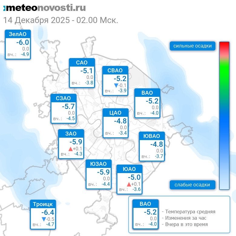 В 2:00 в Москве было от -6.7°C до -4.5°C, средняя температура -5.3°C #погода #Москва #зима #температура #14декабря #воскресенье Перейти на сайт Прогноз погоды на 14 дней