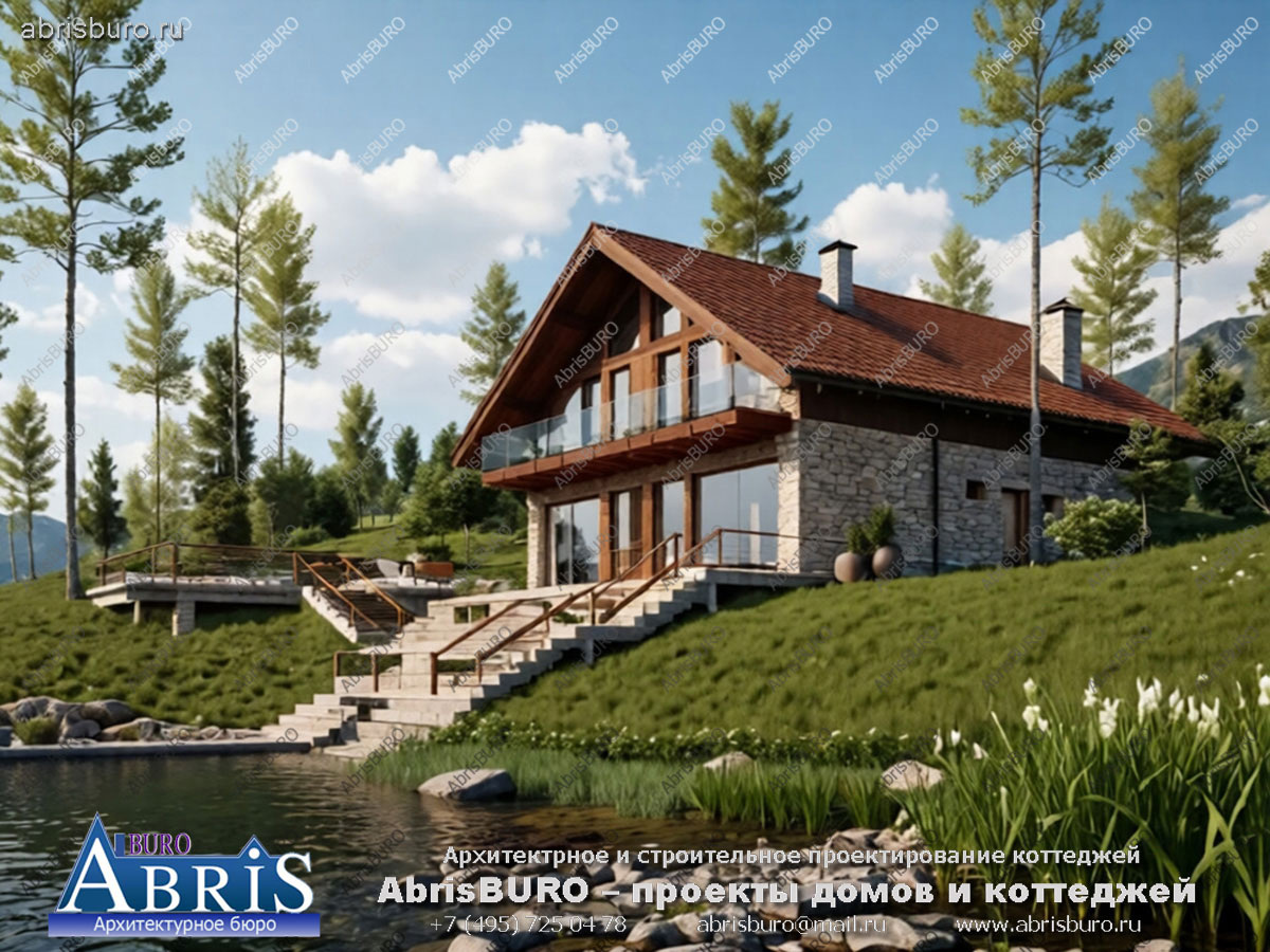 Перед вами проект K1259-140 от архитектурного бюро ABRISBURO — компактный и продуманный дом для жизни у водоема. При габаритах 8,5 на 11 метров он предлагает комфортную площадь в 140,32 м², где каждая зона служит гармонии и отдыху. Главный фасад дома Визуализация главного фасада коттеджа Фасад и образ