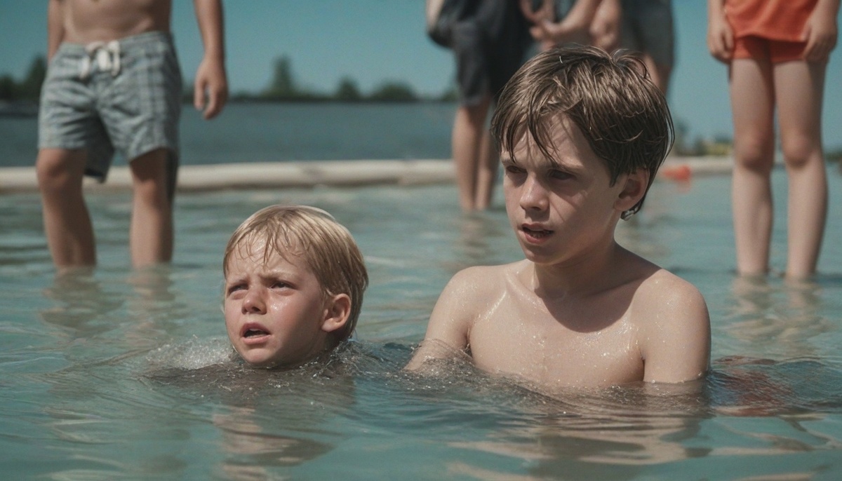 Внезапно идиллию нарушил отчаянный детский крик. Маленькая девочка, запыхавшись, подбежала к ним, выкрикивая: "Там! (Имя девочки) тонет!"