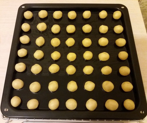 *** Ингредиенты: – мука пшеничная – 3 стакана; – сахар-песок – 1 стакан; – яйцо куриное – 2 шт.; – размягчённое сливочное масло – 200 г; – сода питьевая – 0,5 чайной ложки; – соль – 0,5 чайной ложки. Пошаговый рецепт: – подготовьте духовку и ингредиенты; – в чашке среднего размера, пользуясь миксером, тщательно взбейте яйца с сахаром; – постепенно, хорошо взбивая, добавляйте размягчённое сливочное масло; – добавьте муку, перемешайте; – загасите питьевую соду (соком лимона, лимонной кислотой или уксусом); – добавьте в тесто соль и гашёную питьевую соду; – хорошенько всё перемешайте; – сформируйте из теста небольшие шарики (размером с грецкий орех); – уложите их на смазанный растительным маслом противень; – выпекайте печенье в нагретой до температуры 200°C духовке в течение 20-25 минут (до появления золотистой корочки). Приятного аппетита!