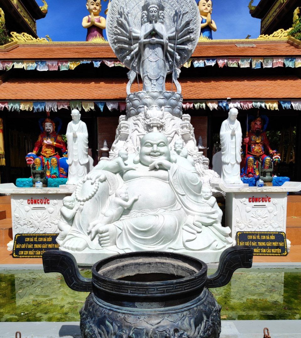⛩️В храме Гуань Инь в Майне много божеств, одно из которых более известно небуддистам. ⛩️Хотэй — божество в буддистской мифологии, добродушный старичок с большим пузом, один из «семи богов счастья». Его легко идентифицировать, жизнерадостный монах с огромным животом сидит и улыбается. ⛩️Хотэй -- символ изобилия и жизненной энергии, в храме Тхиен Куанг можно было любую из многих скульптур Хотэя погладить, именно животик, что будет означать загаданное денежное желание. #Хотэй #ГуаньИнь #храм #буддизм #Вьетнам