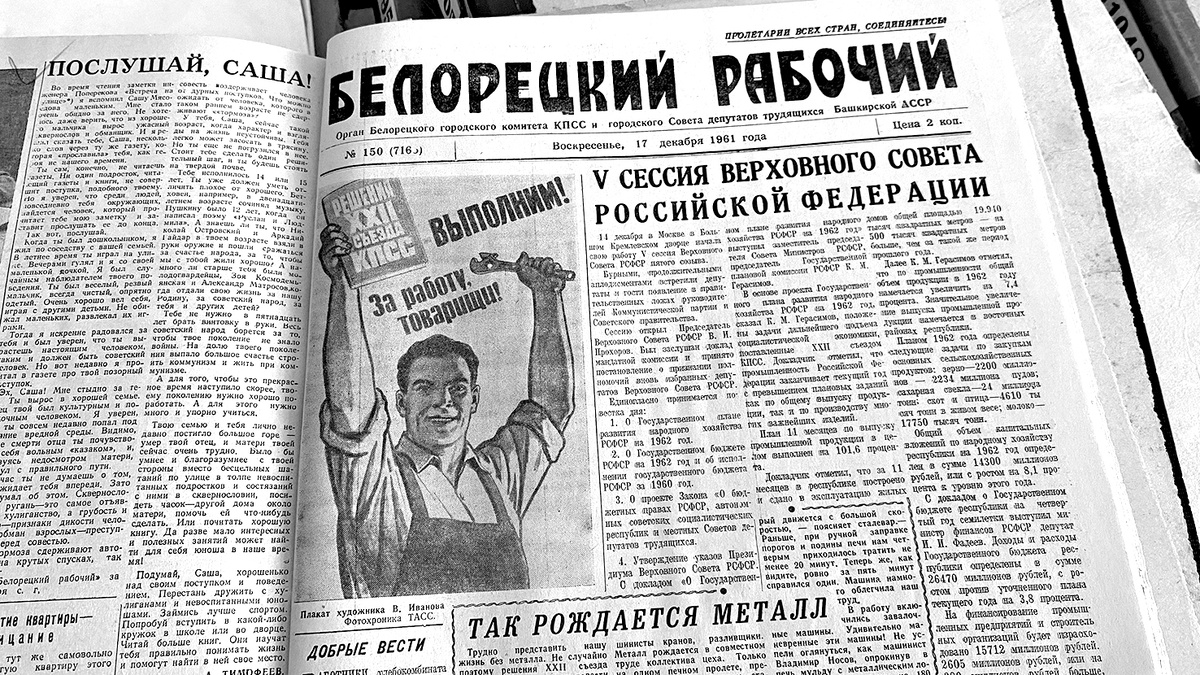 Подшивка 1961 года. В газете совершенно иной стиль подачи материалов: нет надрывности, меньше стало критики и доносительства. Оно и понятно: ушла сталинская эпоха. Для одних великая, для других проклятая. В газете стало спокойно, корреспонденты писали в основном об успехах социалистического строительства и передовых рабочих: «В первом цехе сталепроволочного завода славится своими делами волочильщик Виктор Алексеевич Шелыгин. Производственные задания он ежемесячно выполняет на 120-130 процентов…»