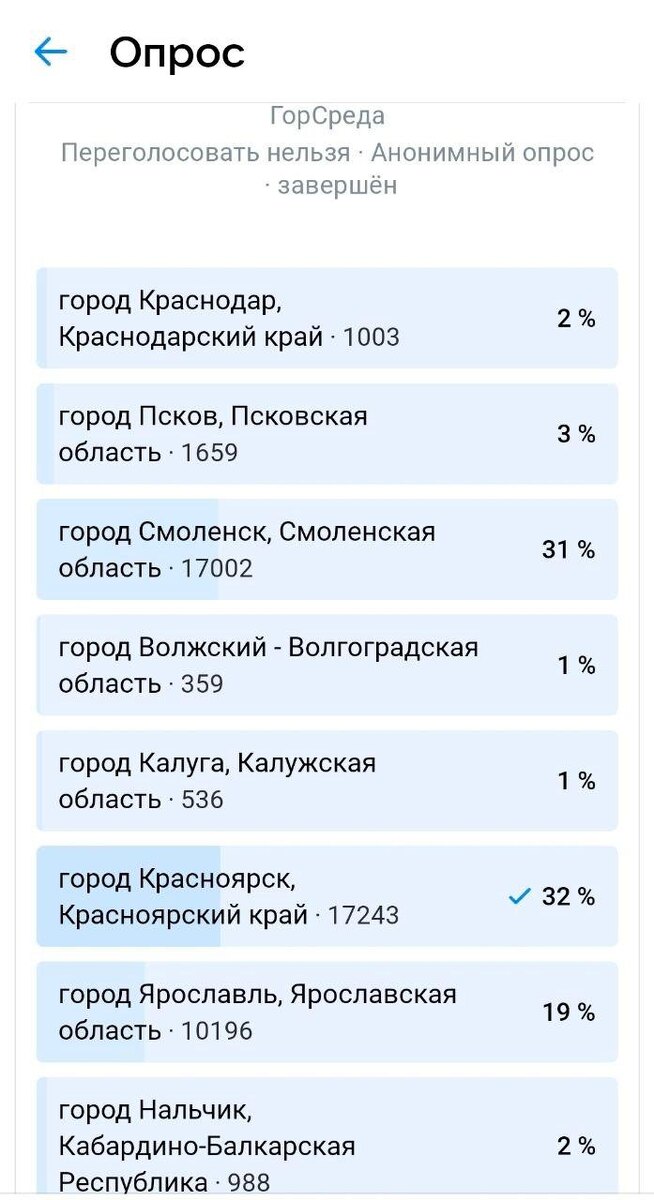 В ответ на пост Наш город в полуфинале 2-го Всероссийского конкурса «Въездные стелы муниципальных образований и входные группы общественных пространств» набрал 17 243 голоса, обогнав Смоленск. Финал состоится 24 декабря, а 26 числа жюри подведет итоги. Победитель получит сертификат на 2 млн рублей для установки новой въездной стелы. ТВК