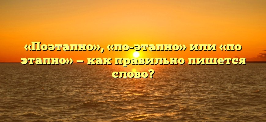 «Поэтапно», «по-этапно» или «по этапно» — как правильно пишется слово? Если возникают сомнения, как правильно писать – «поэтапно», «по-этапно» или «по этапно», нужно вспомнить правило словообразования. Как пишется правильно: «поэтапно», «по-этапно» или «по этапно»? В орфографическом словаре указывается единственный вариант написания: «поэтапно», в одно слово. Какое применяется правило Чтобы понять, как писать правильно заинтересовавшее нас слово, выясним, к какой части речи оно относится. Задаем вопрос: «как?» – «поэтапно». Перед нами наречие. Произведем его морфемный разбор: 6. «по» – приставка; 7. «этап» – корень; 8. «н» – суффикс; 9. «о» – окончание. Заинтересовавшее нас слово образовалось от прилагательного «поэтапный», которое, в свою очередь, образовалось от существительного «этап». Словообразовательная… #Орфография Подробнее: https://2025.obr.prime-name.ru/russkij-yazyk/orfografiya/poetapno-po-etapno-ili-po-etapno-kak-pravilno-pishetsya-slovo.html