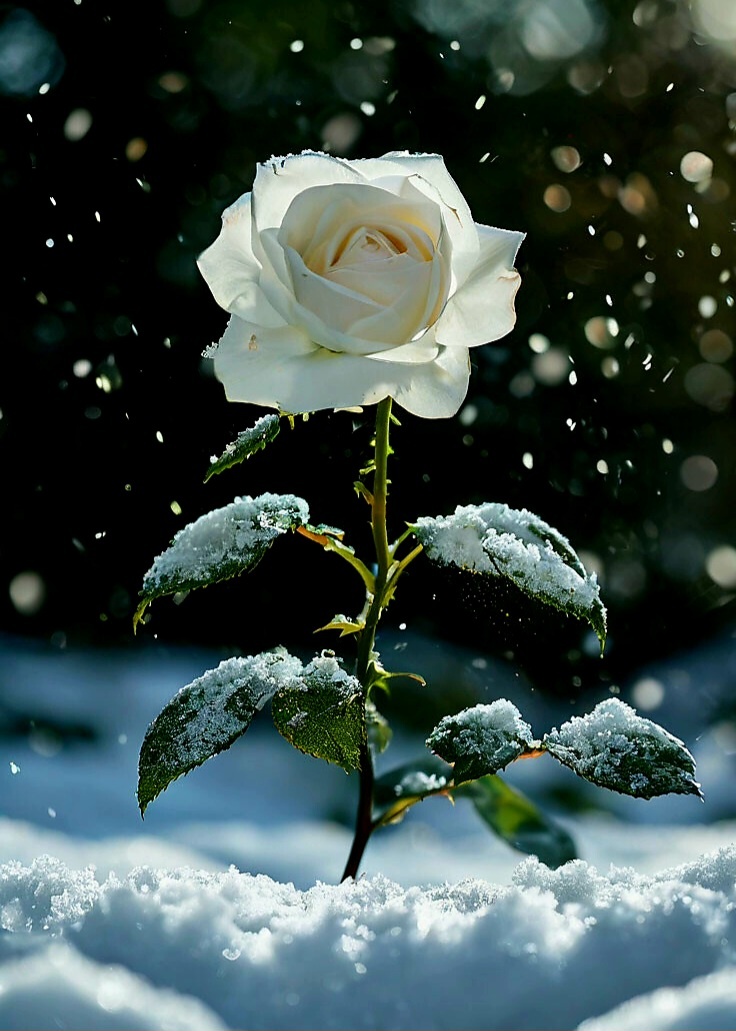 Снова вернулись метели, морозы, Но не погибли цветы, Снежинки упали на белые розы, И каплями стали воды, А с неба луна свет холодный дарила, И каждый дышал лепесток, Седая ночь розы собою укрыла, Согрев хрупкий, нежный цветок, А белые розы холодной зимой, Поверят в тепло темной ночи седой, Не сдавшись морозам, одни в тишине Сквозь боль и разлуки цветут на земле Вновь вьюга дороги, следы заметает, Вот только не вечна зима, И ласковый май, знают розы, настанет, К цветам прикоснется весна Уйдёт ночь седая, поднимется к звездам, А время все дальше идёт, Водой дождевой с неба катятся слезы, И белая роза цветет