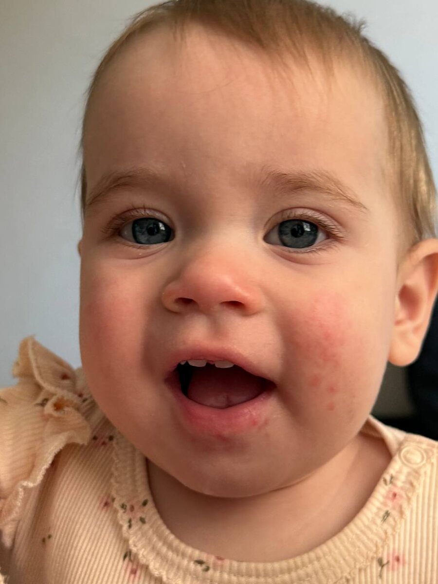 Нас сильно высыпало.. вообще не понимаю на что, новые продукты не вводила..вчера было на подбородке, сегодня уже на щечках😭