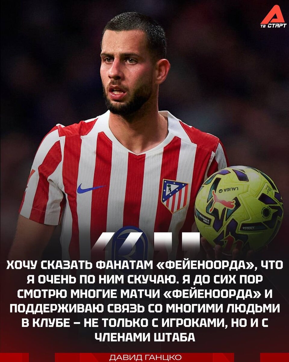 😢 Ганцко сильно скучает по «Фейеноорду» Давид классно выступает за «Атлетико», но продолжает смотреть почти каждый матч роттердамской команды. Кстати, у вас сегодня тоже есть такая возможность. Матч «Аякс» – «Фейеноорд» — в 16:30 на телеканале «Старт» 📺 🛒 Наше приложение в Google Play 💙 Наше приложение в RuStore 🛒 Наше приложение в App Store