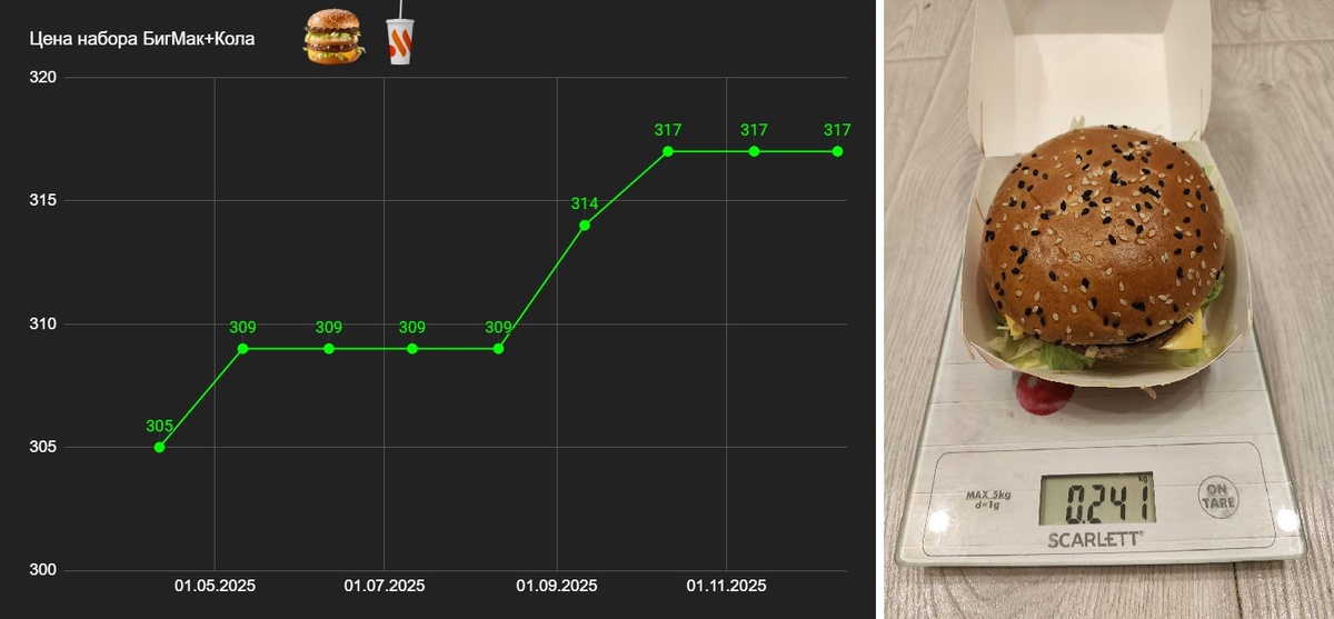 Набор стоит 317 рублей (216+101), как и в прошлом месяце. А всего рост цены +4% за 9 месяцев. За шринкфляцией тоже слежу. Вес изделия существенно не меняется в этом году (216-220г - ведь коробка весит 20г).