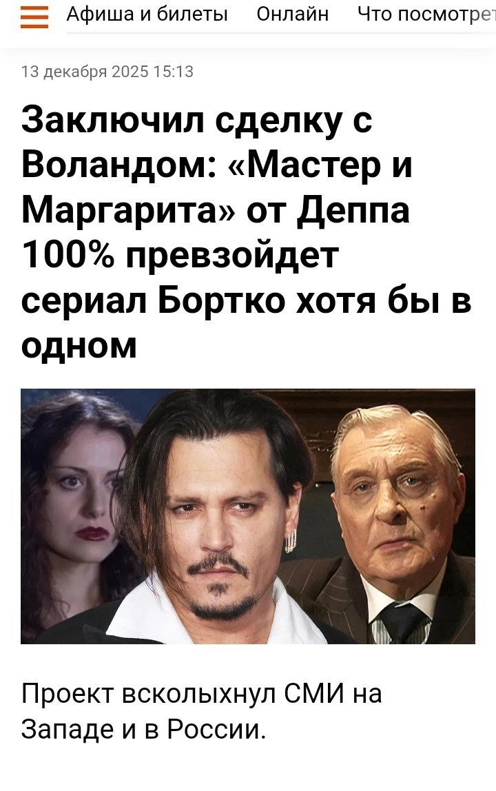 Вот это новость, друзья! Я сегодня прочитала, что американцы снимают свою версию "Мастера и Маргариты" с Джонни Деппом в одной из главных ролей. Как вы думаете, кого здесь может сыграть Джонни? Воланда или Фагота, например? Думаю литературной точности от них точно не стоит ожидать, т к и последняя российская версия была скорее по мотивам книги, чем по самой книге. Но костюмы были шикарные 🔥 Мне эта книга в школе совершенно не понравилась, не смогла дочитать до конца. А вот спустя лет десять я решила прочитать и не один раз, и каждый раз было что-то новое для меня. А как вы относитесь к этому произведению?