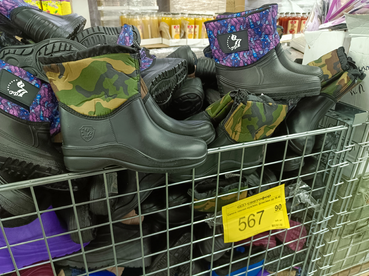 - Полусапожки демисезонные за 568 рублей. Идеальный вариант для дачи или частного дома. Ноги всегда в тепле, и не жалко испачкать.