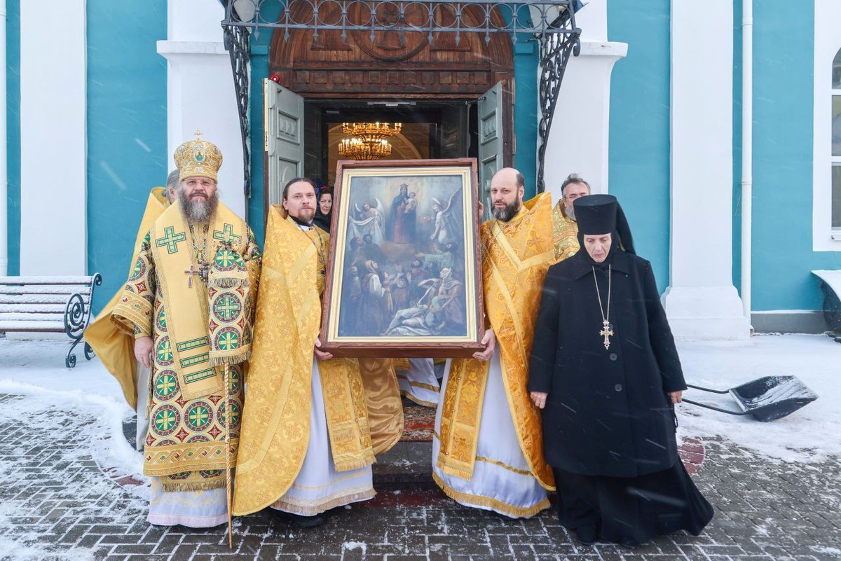 В Тамбове 13 декабря, в день памяти святого апостола Андрея Первозванного, прошли проводы мироточивой иконы Божией Матери «Всех скорбящих Радость». После Божественной литургии в храме Вознесенского женского монастыря их возглавил митрополит Тамбовский и Рассказовский Феодосий, сообщили в Тамбовской митрополии. Икона пребывала в обители с 19 октября. Службу возглавил владыка Феодосий. За богослужением молились настоятельница монастыря игумения Тавифа Ковылова с сестрами обители, а также прихожане. Чудотворный образ постоянно пребывает в храме св. Иоанна Предтечи села Ивановка Сампурского округа. Икона в 1995 году замироточила, чудо произошло 10 октября. Это событие задокументировано официально – в храме в это время находилось 24 человека. 📸 Ивана Анникова