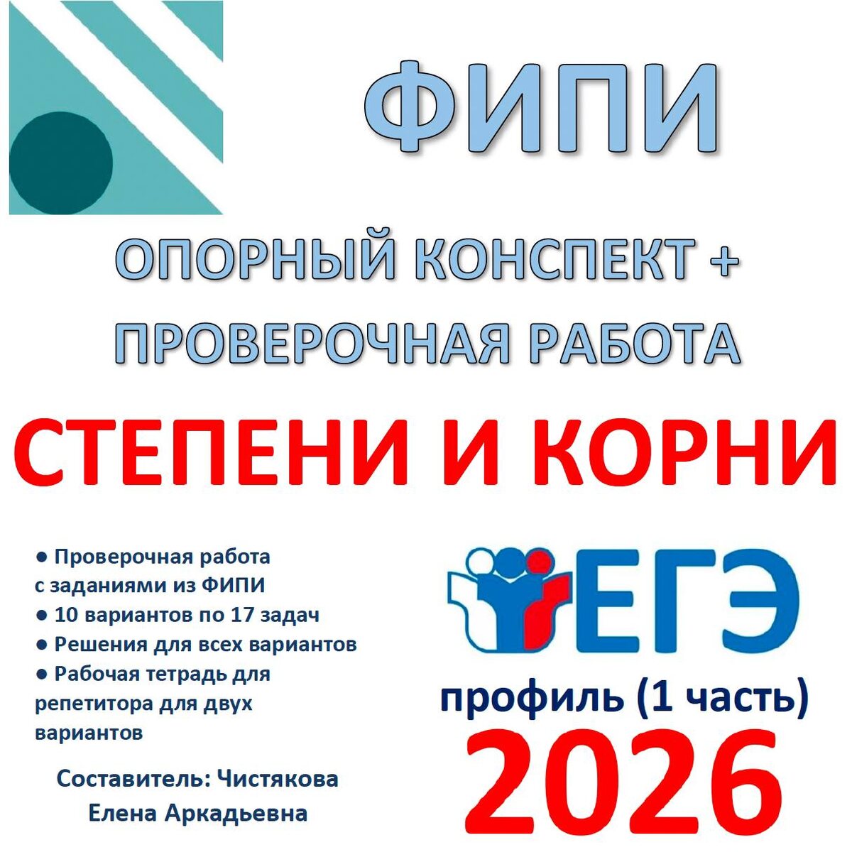 ❗Внимание❗⭐Обновление⭐ Сделали сверку с ФИПИ и привели в соответствие с новыми заданиями. Добавили опорный конспект по теме. Кто брал, скачайте бесплатно. ЕГЭ профиль 1 часть Проверочная работа "Степени и корни" 📥Скачать на WB: Содержит: 🔹Опорный конспект по теме. 🔹 Проверочную работу в 10 вариантах по 17 заданий, взятых с сайта ФИПИ. 🔹 Последняя сверка в декабре 2025 года. 🔹 Полное решение + таблица с ответами + критерии оценивания. Материал скомпонован в три PDF файла: 🔹Файл учителю 5 страниц. 🔹Файл ответы 21 страница. 🔹Файл репетитору 5 страниц. Проверочную работу может выполнить ученик 10 класса после изучения главы 2 учебника Алимова. Эти задания будут на ЕГЭ профиль под №6 и 7 (1 часть без оформления, только ответы) 🐹Сайт ВБ временно не работает, приобрести можно перечислением на Сбер либо на расчетный счет ИП. 250 руб. ВК: vk.com/write-189202225 Телеграм: t.me/elen_chist