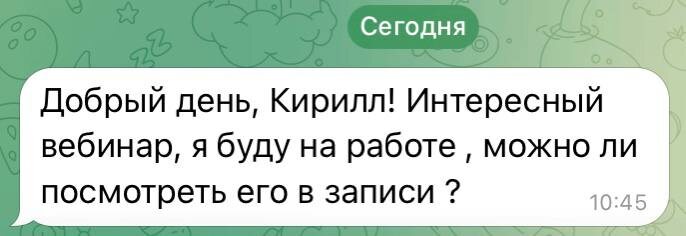 Записи не будет, т.к. это не эффективно. Далее расскажу, почему. Сейчас активно готовлюсь к вебинару, сроки довольно сжатые. И замечаю, что имея дедлайн генерирую интересные идеи. Если бы временных рамок не было, то я бы все делал либо как обычно, либо полагался на случайный порыв вдохновения, что штука не очень надёжная. Границы стимулируют творчество! Специально добавил в вебинар блок про это. Когда все доступно без лимита по времени - это не эффективно. Поэтому записи не будет = эксклюзивный контент. Еще 3 дня до вебинара, регистрируйтесь сейчас, включите в план, и тогда точно сможете решить свои дела и прийти)