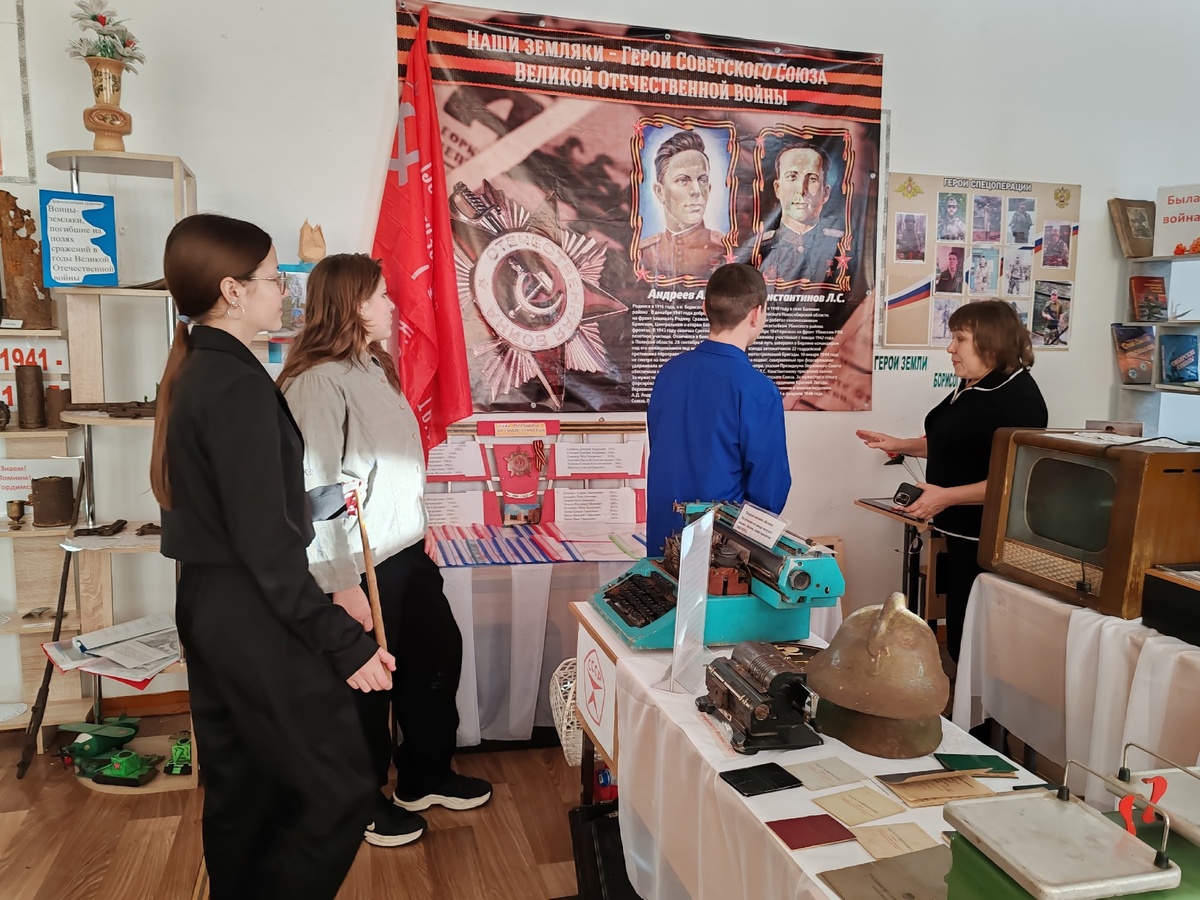 В Борисоглебской средней школе для учеников была организована особенная выставка и музейный урок в рамках Всероссийской акции «История Героев». Мероприятие, посвященное Дню Героев Отечества, носило название «Герои моей малой Родины».