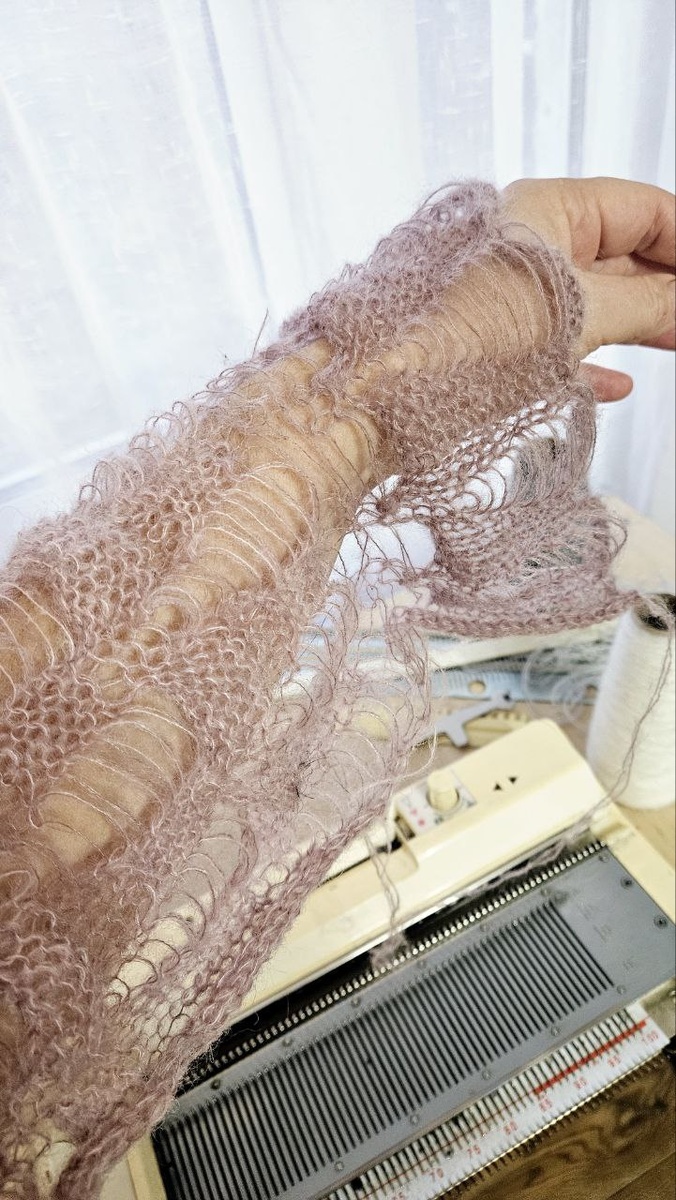 Когда закончу пальто, буду вязать такую кофточку паутинку из мохера