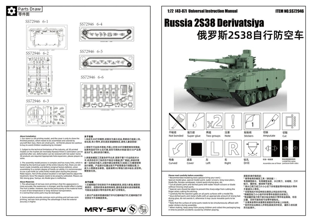 Китайская SS Model показала инструкцию своей выпущенной на 3D-принтере модели 2С38 "Деривация" в масштабе 1/72