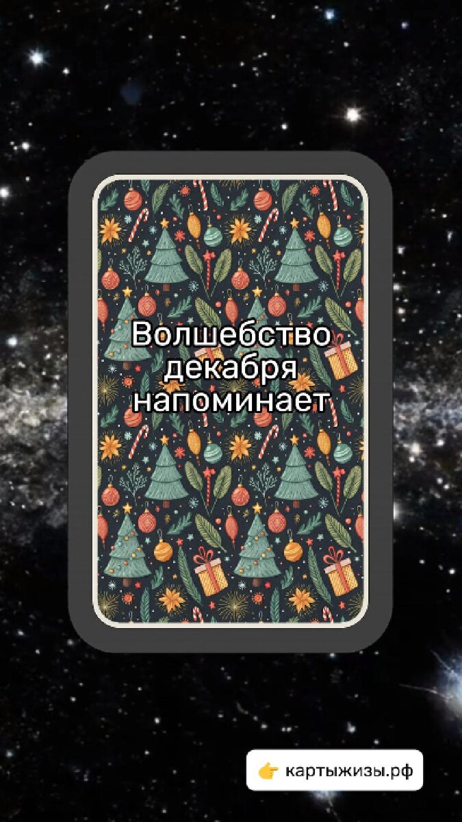 «Новогоднее Таро» — это карты про праздник без глянца: мандарины, ёлки, спонтанные траты и чудеса, которые случаются между оливье и фейерверками. Позвольте себе отпустить контроль. Закройте банковское приложение и откройте подарки. Деньги любят счёт, но праздник любит щедрость — к себе в первую очередь. 🍊 Прямое значение: всё просчитано, всё под контролем, даже мандарины учтены. 💸 Перевёрнутое: потрачено больше, чем планировали — но зато от души. 📊 Совет карты — сначала живите, таблицы подождут. Все карты и значения — на картыжизы.рф #знакивселенной #картадня #картыжизы #новогоднеетаро