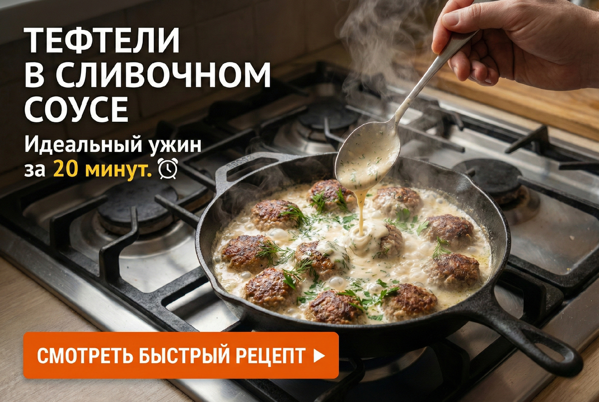 Вы приходите с работы, уставшие и голодные. Доставка едет час. В холодильнике только фарш. Что делать? Многие боятся браться за тефтели, думая, что это долго: «крутить, обжаривать, потом запекать в духовке 40 минут...». Забудьте. Сегодня мы приготовим экспресс-тефтели на одной сковороде. Без духовки, без горы грязной посуды и всего за 20 минут. Секрет этого блюда — в сливочной бане. Мясо не запекается до сухости, а томится в густом соусе, впитывая сливочный вкус и становясь невероятно нежным. Готовы? Засекайте время! 1. Секрет скорости: Размер имеет значение Чтобы уложиться в 20 минут, нужно изменить подход к формированию. Классические тефтели: Размер с теннисный мяч. Готовятся долго, внутри могут остаться сырыми. Наши экспресс-тефтели: Размер с грецкий орех (или чуть больше).