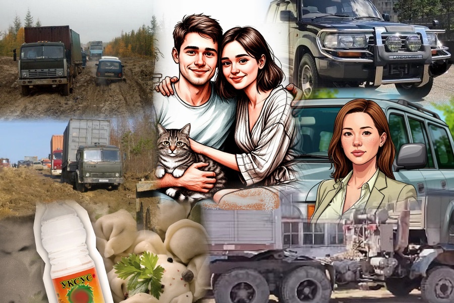 ...Утром проснулся от голосов и шума моторов. Со спальника вылез, солнце светит в правое окно. А вокруг людей и машин всяких разных, как будто на центральной площади города в праздник. Вылез из кабины, а помимо «Сайгака» ещё насколько машин в ловушку, как те мухи на липкую бумагу, попали. И грузовики там и легковушки. К КрАЗу подошёл, Сергей с Костей у бампера стоят, наблюдают за тем, что происходит.