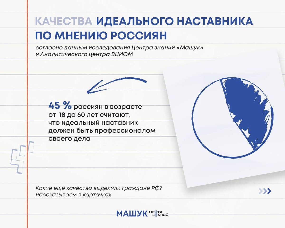 Хочу быть идеальным наставником, но не знаю, какими качествами нужно обладать 👨🏫 Что ж, сейчас расскажем! 📌 Сегодня представляем образ идеального наставника, каким его видят россияне. О его ключевых качествах 👉в новых карточках исследования Центра знаний «Машук» и Аналитического центра ВЦИОМ.