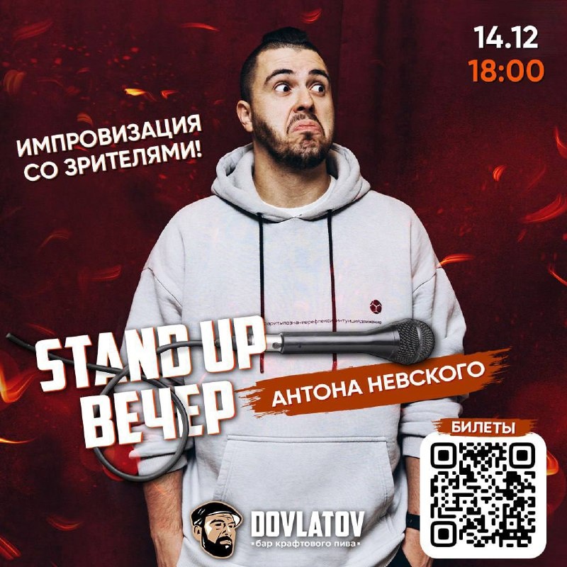STAND-UP ШОУ АНТОНА НЕВСКОГО 🗓️ 14 декабря, сбор гостей 17:30, начало в 18:00 📍бар Довлатов Приглашаем вас провести вечер с юмором в компании Антона Невского — мастера импровизационного стендапа. Здесь нет сценария: все происходит «здесь и сейчас». Антон ловит настроение зала, заводит диалог со зрителями и плетёт неповторимые истории на ходу, превращая случайные реплики в искромётный юмор. Вы становитесь не просто зрителем, а соавтором представления: достаточно одного взгляда, реплики или забавного случая — и шоу уже меняет направление. Это вечер легкости, открытости и настоящего взаимодействия между артистом и публикой. Билеты 🎟️ #14декабря25@culturnik